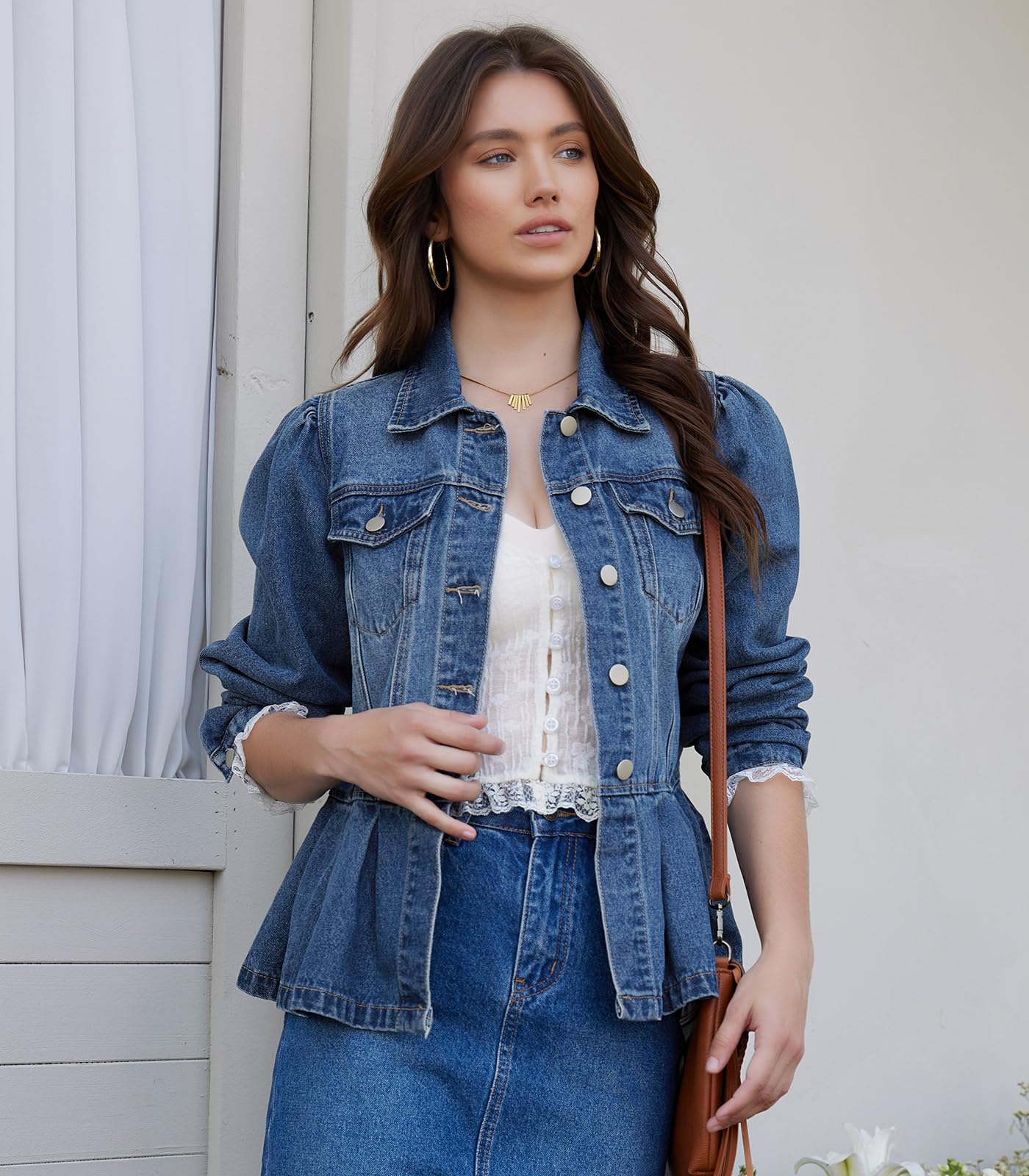 - Classic and Trendy: This long sleeve denim jacket features button up front, spread collar, two chest pockets, puff sleeve and peplum hem can complement various body types