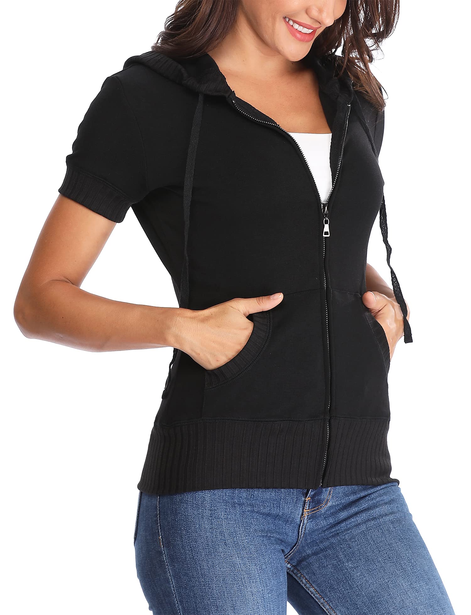 MISS MOLY Women's Zip Up Hoodie Short Sleeves Hooded Jacket Casual Lightweight Sweatshirt with Pockets